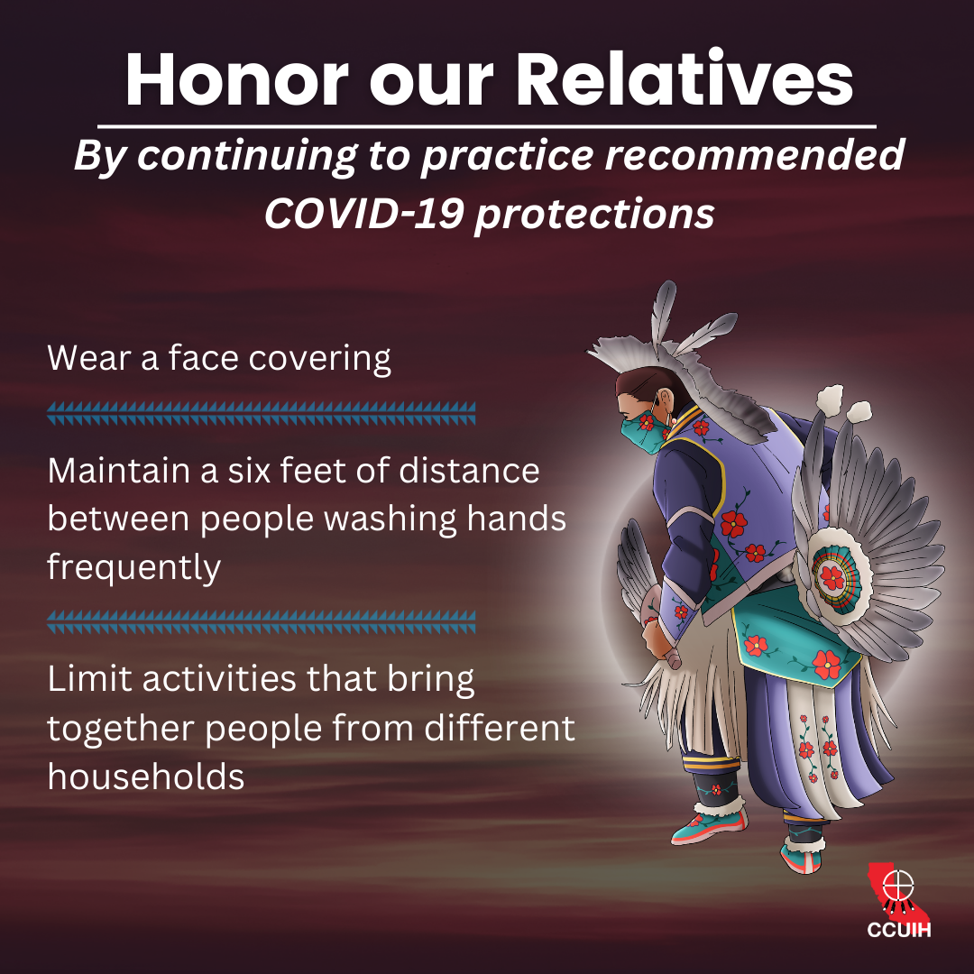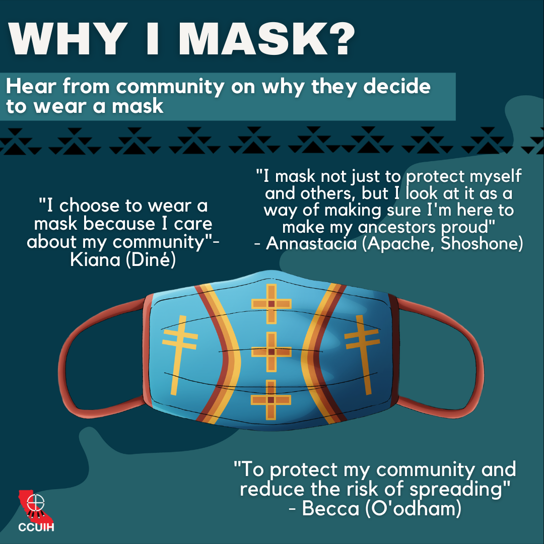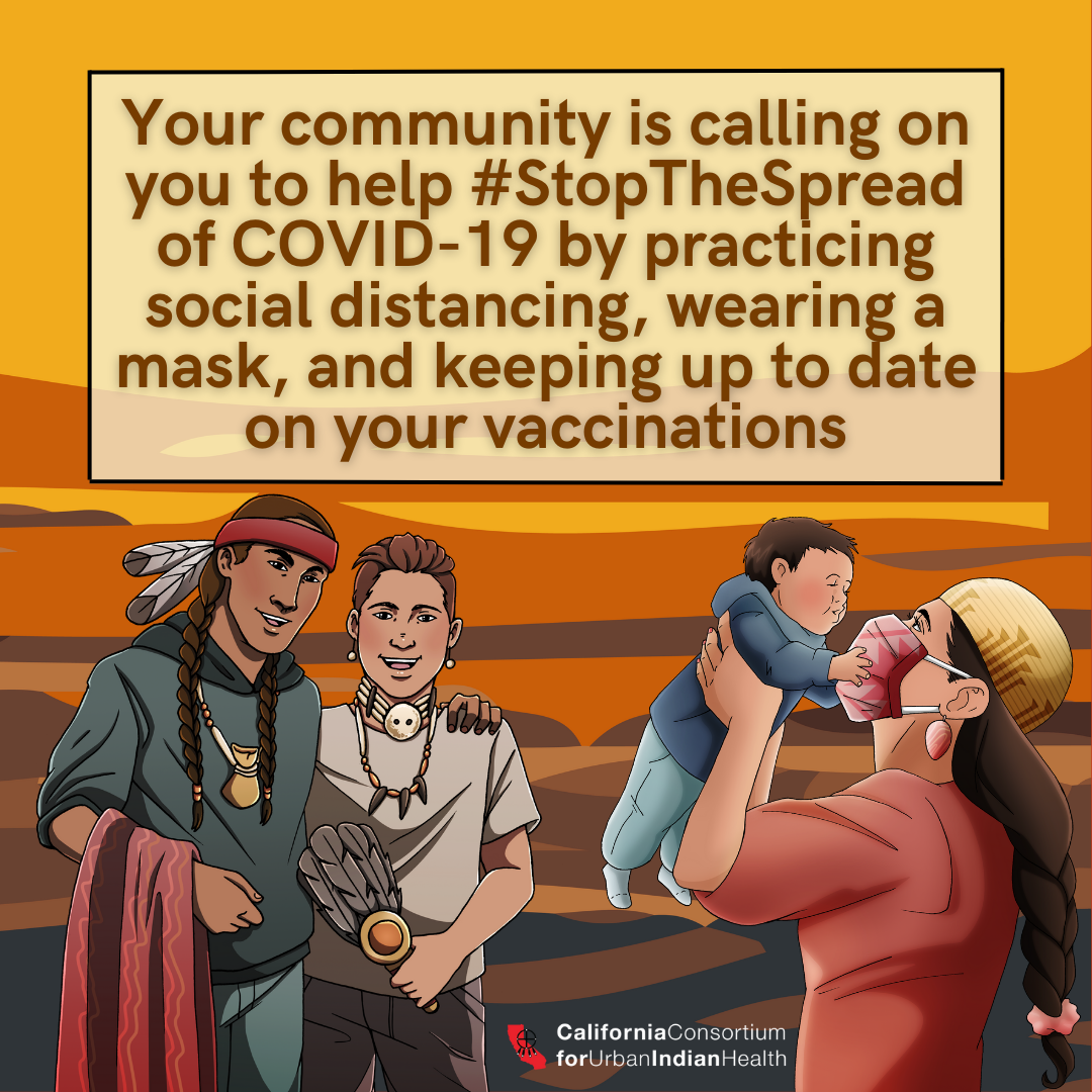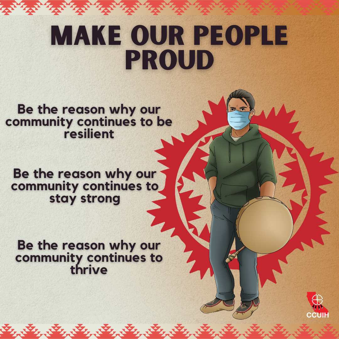 In constant collaboration with community partners and leaders, CCUIH developed essential tailored COVID-19 harm reduction graphics designed for our AIAN community. These public health graphics were designed by CCUIH for the CDPH. These graphics are to be utilized and shared with all AIAN communities.