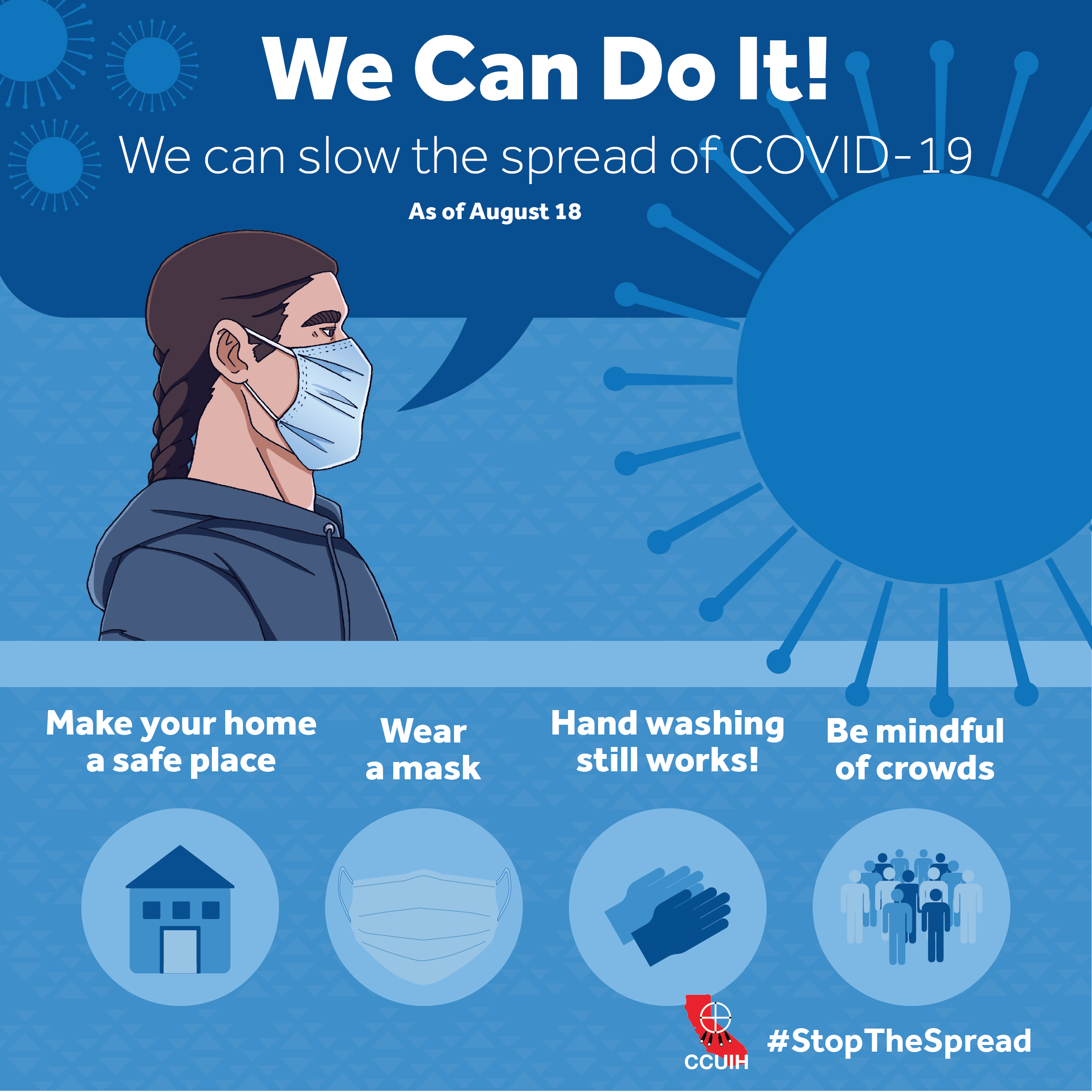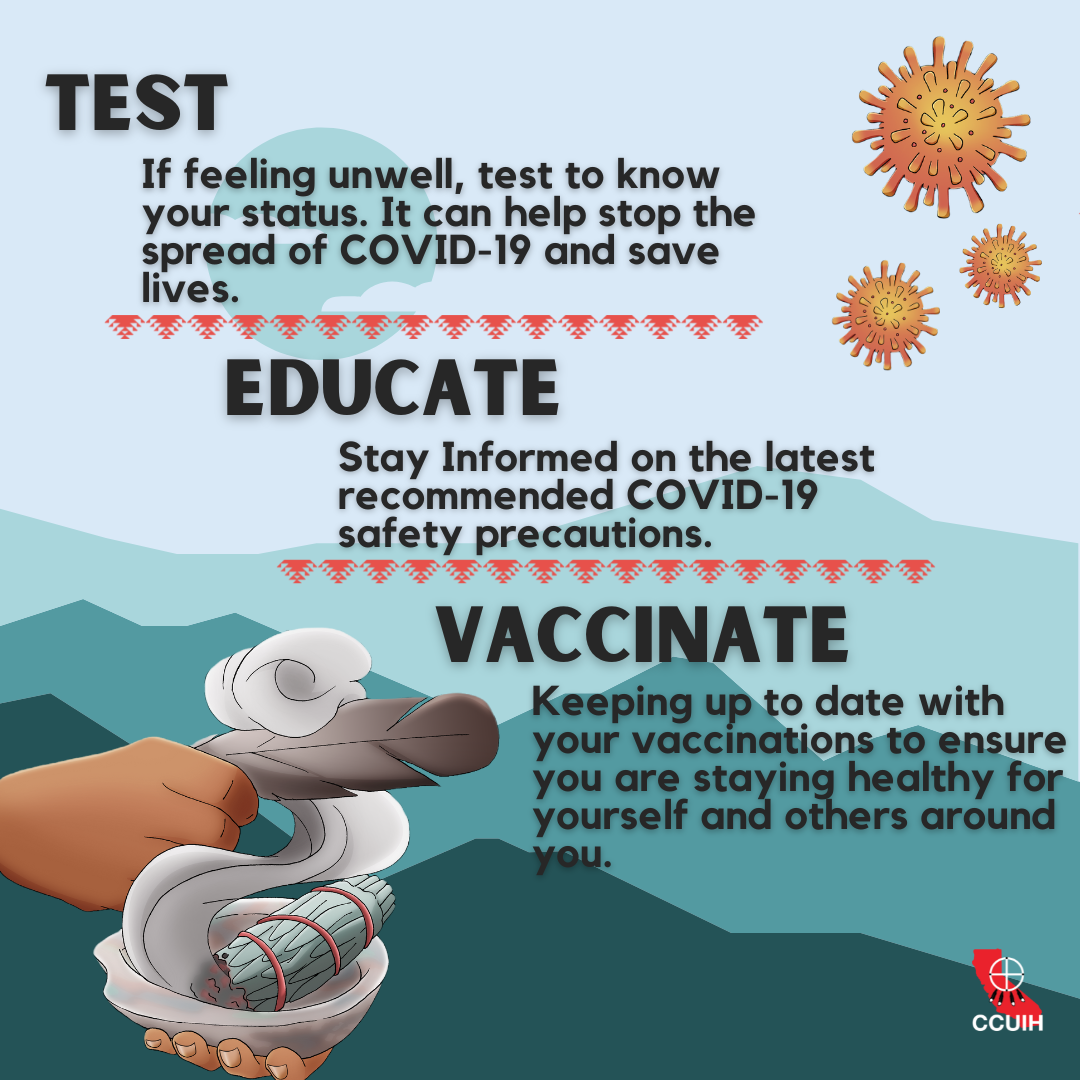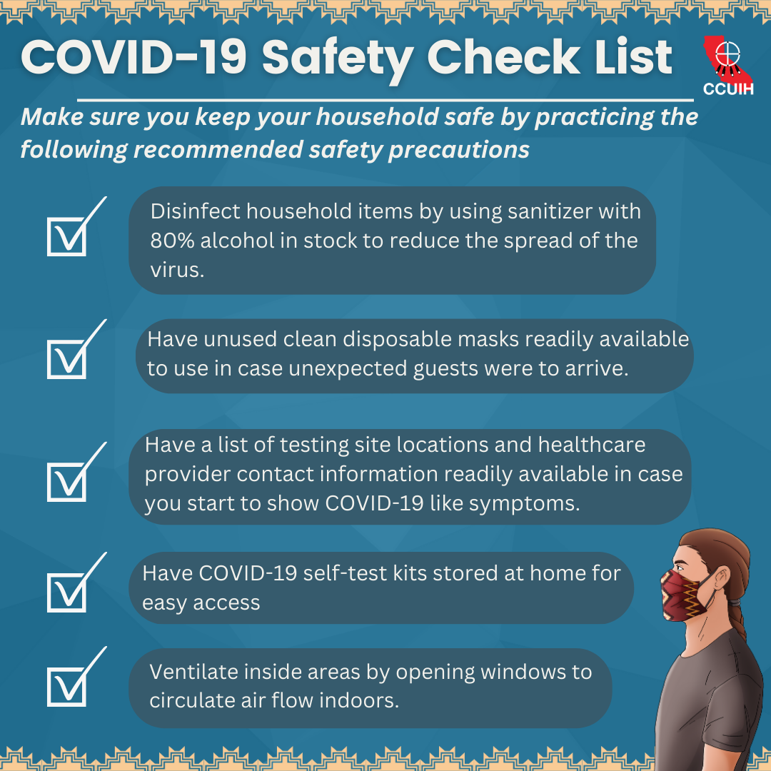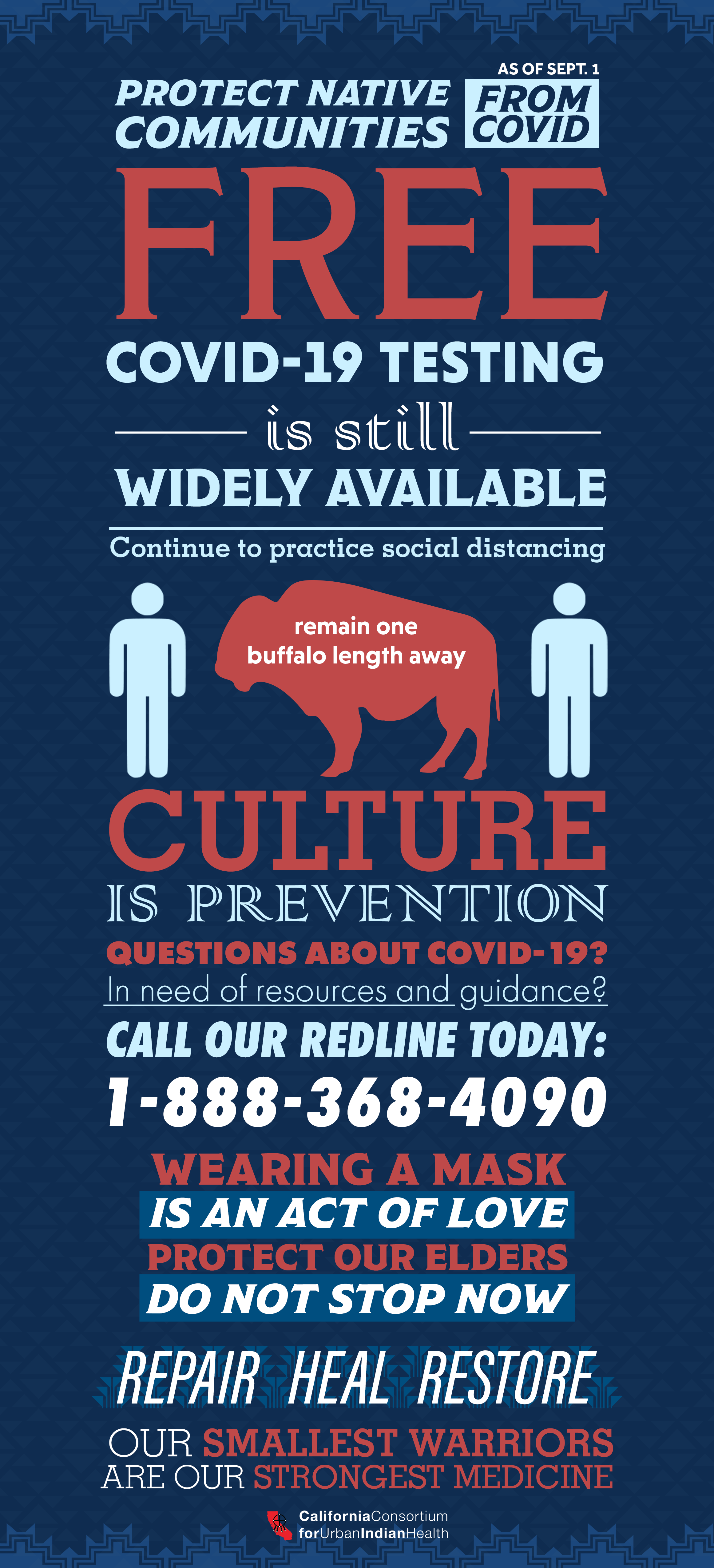 In constant collaboration with community partners and leaders, CCUIH developed essential tailored COVID-19 harm reduction graphics designed for our AIAN community. These public health graphics were designed by CCUIH for the CDPH. These graphics are to be utilized and shared with all AIAN communities.