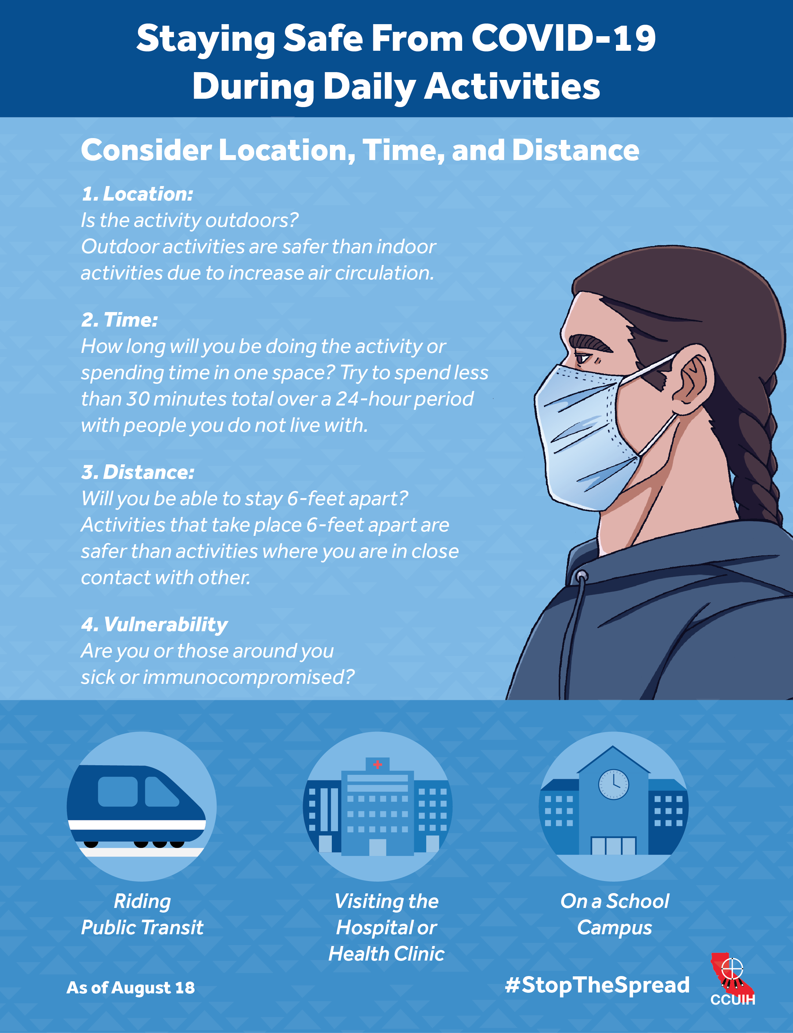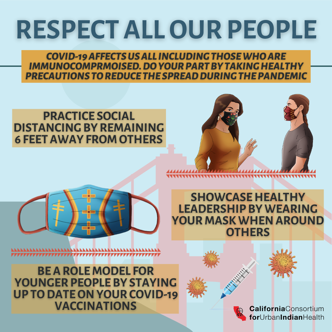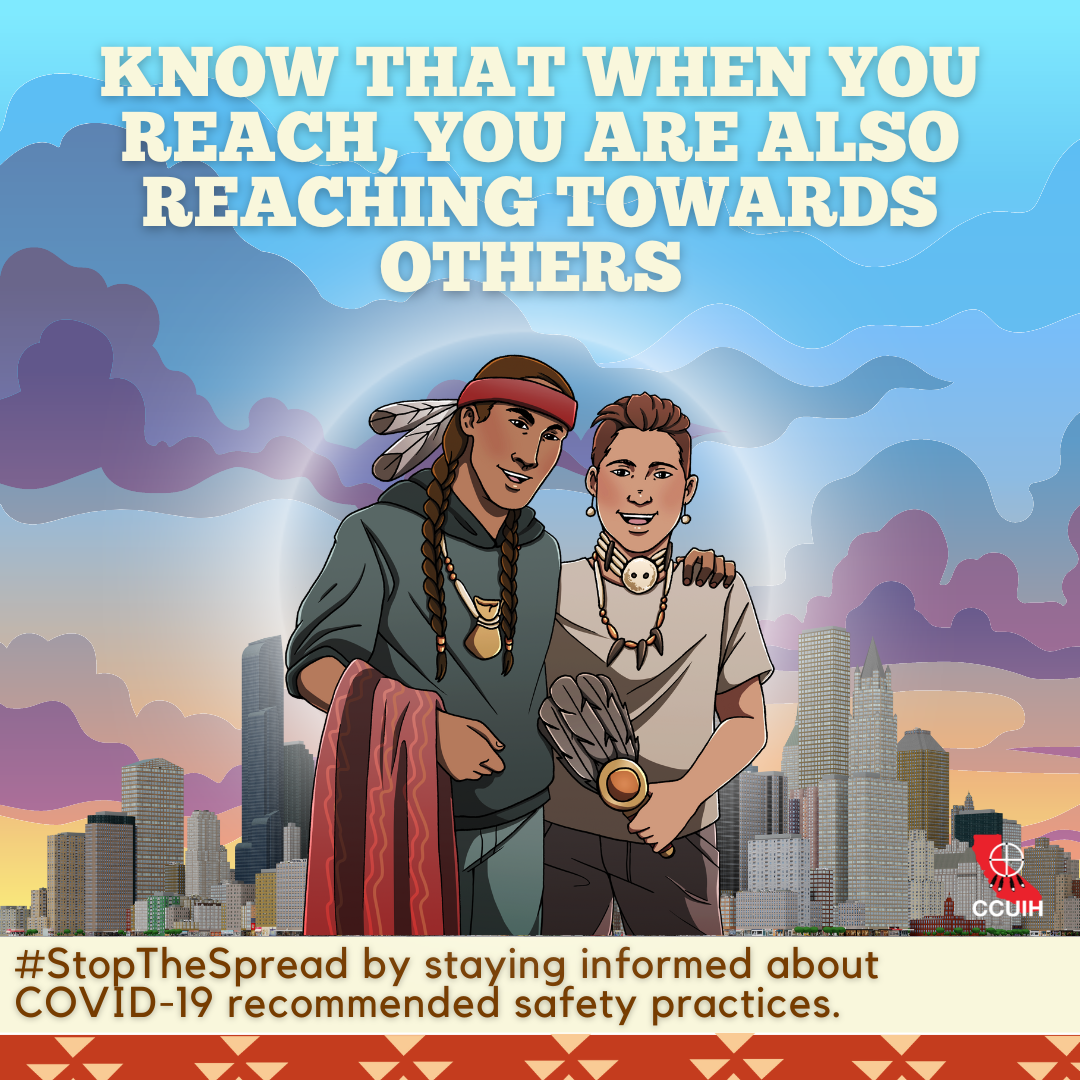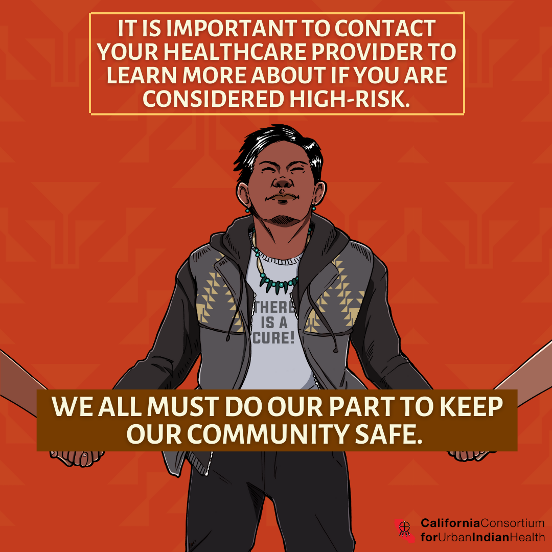 In constant collaboration with community partners and leaders, CCUIH developed essential tailored COVID-19 harm reduction graphics designed for our AIAN community. These public health graphics were designed by CCUIH for the CDPH. These graphics are to be utilized and shared with all AIAN communities.